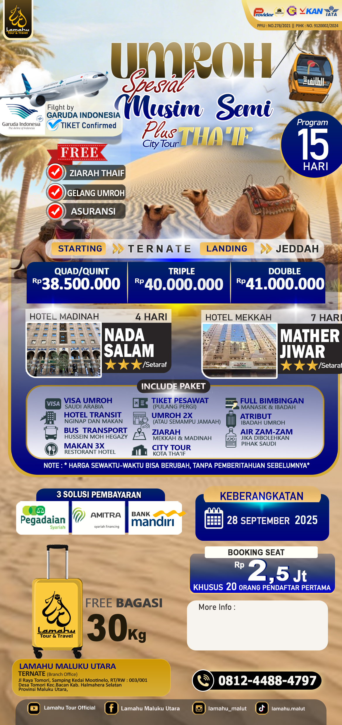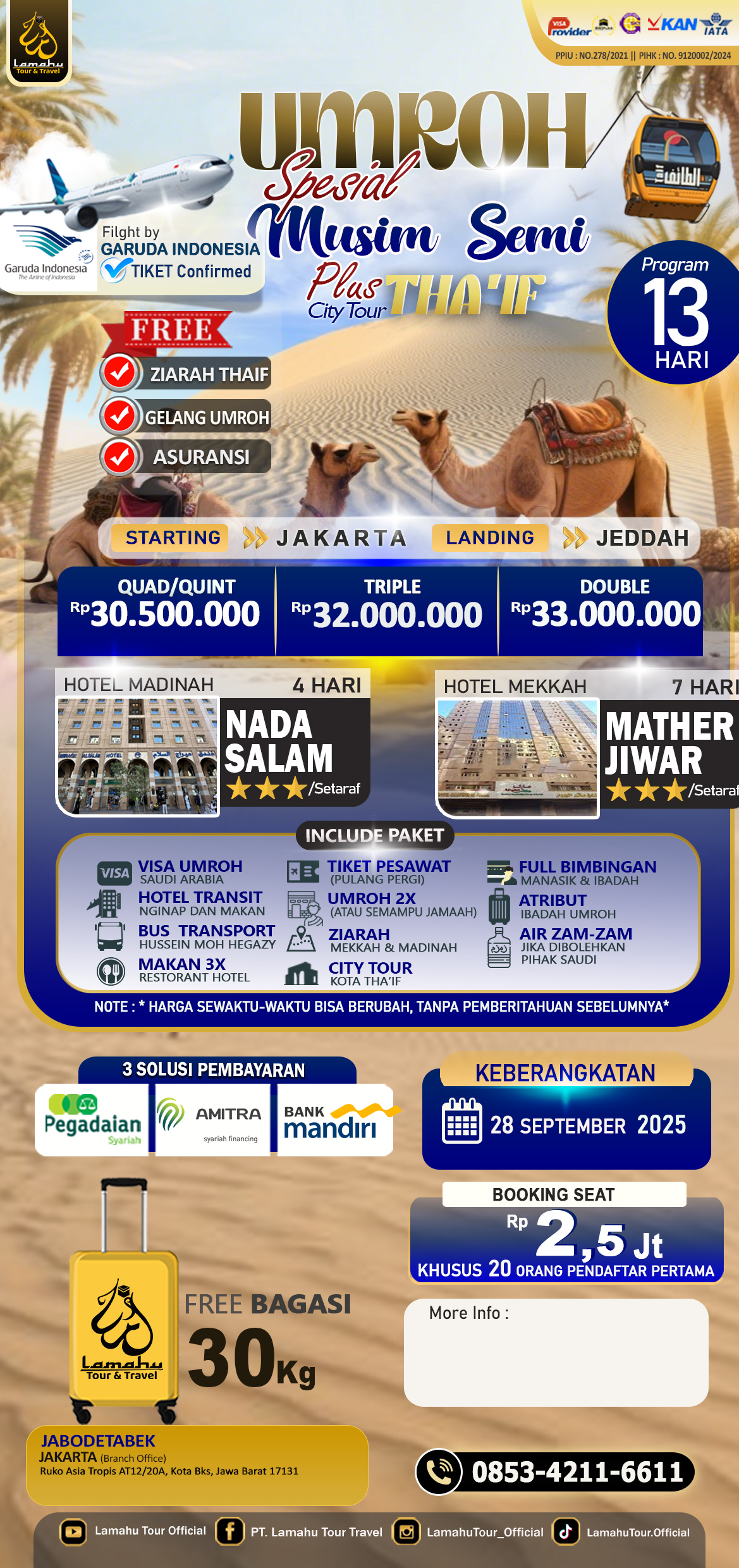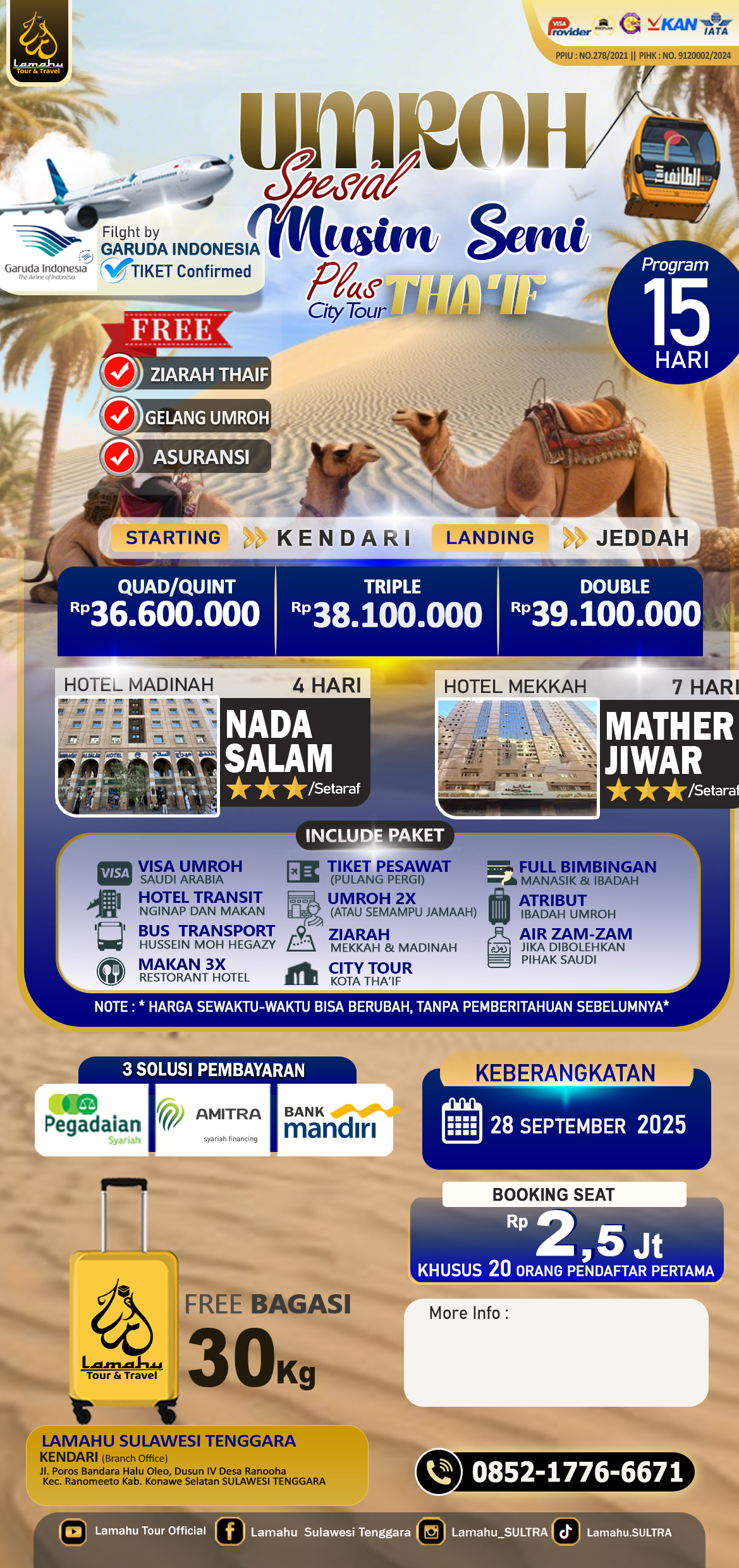 • Bagasi 20 kg & Air Zamzam