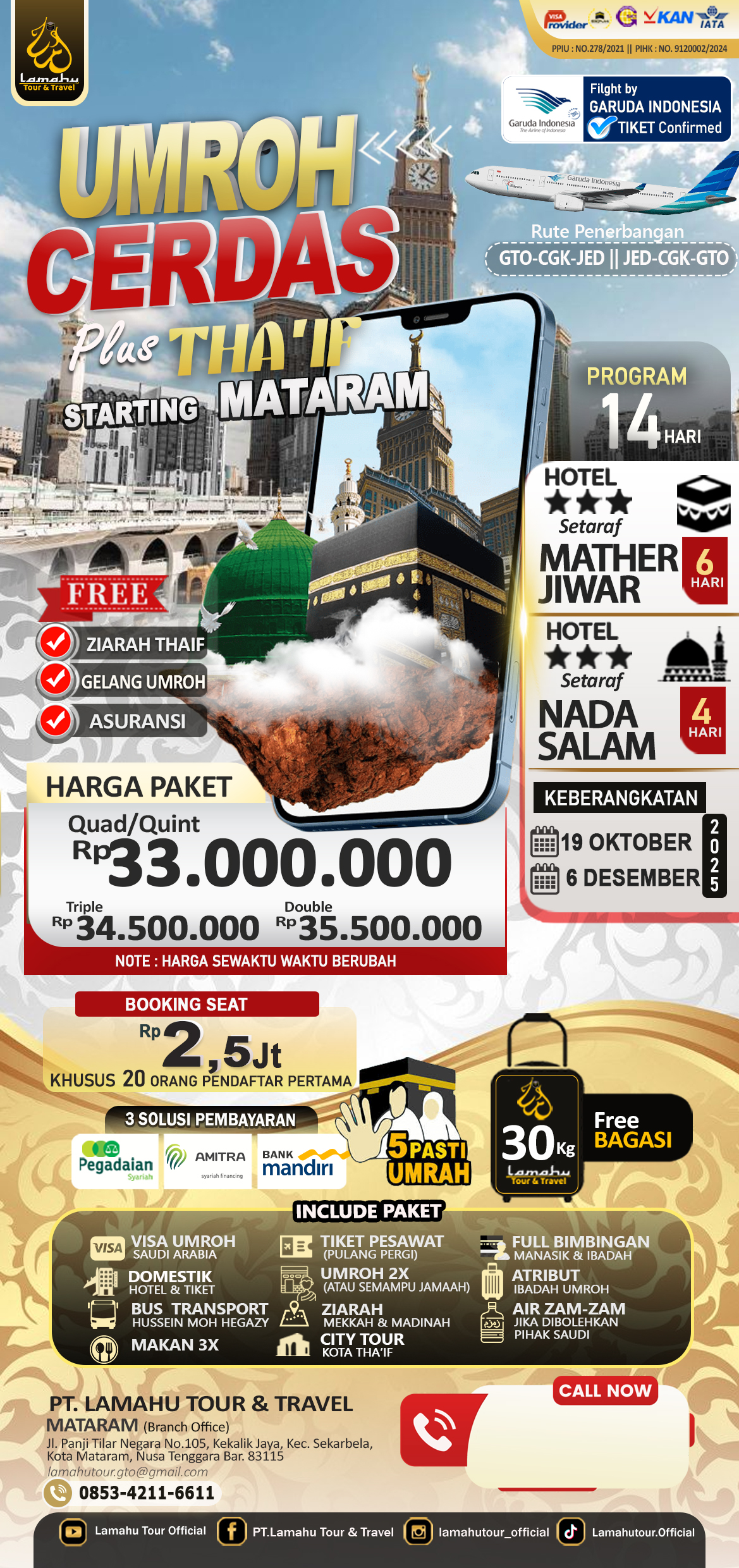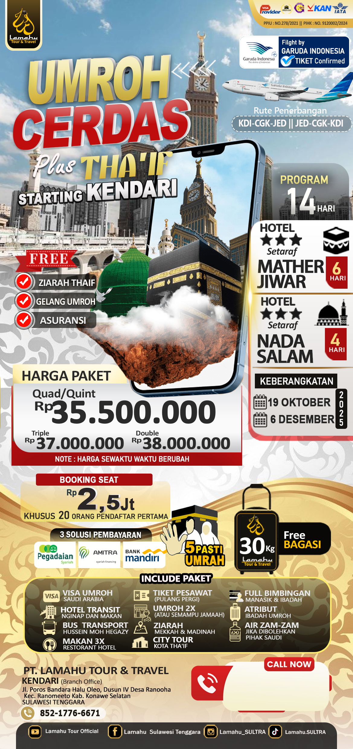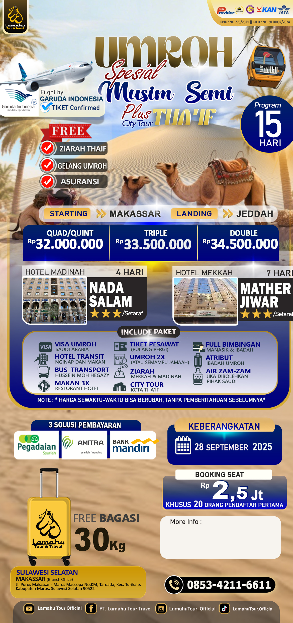 • Bagasi 20 kg & Air Zamzam